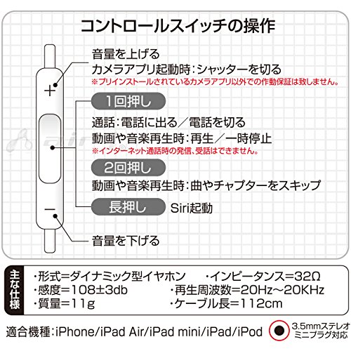 -. Title : エアージェイ Air-J iPhone6 iPhone6 Plus 対応 ステレオヘッドホン リモートマイク付 3.5φ4極