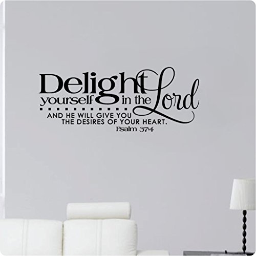 -. Binding : Kitchen -. Brand : WallPressions -. Color : Black -. EAN : 0700465015372 -. Feature : Size: 28" x 12" / Color: Matte Black / High-Quality Die-Cut Oracal Vinyl Made In the USA / Written & Video Instructions Included / Will not damage walls Non-transferrable -. Label : Wall Pressions -. Manufacturer : Wall Pressions -. ProductGroup : Home -. ProductTypeName : HOME -. Publisher : Wall Pressions -. Studio : Wall Pressions -. Title : 28" Delight Yourself In The Lord and He Will Give You The Desires Of Your Heart Psalm 37:4 Bible Verse Scripture Christian Wall Decal Sticker Art Mural Home Décor Quote -. UPC : 700465015372