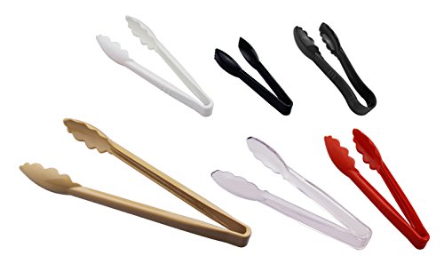 New Star Foodservice 35568 Utility Tong, High Heat Plastic, Straight Edge, 6 Inch, Set of 12, Beige