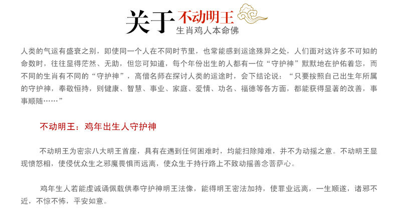 鸡年生人若能虔诚诵佩载供奉守护神明王法像,能得明王密法加持,使罪业远离,一生顺遂,诸邪不近,不惊不怖,平安如意。