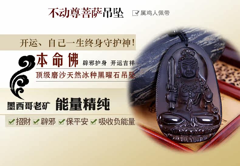 Buddha pendant黑曜石冰种不动尊菩萨吊坠男士开光和田玉不动明王吊坠菩萨/Best for zodiac rooster/Suitable for all/BestGift