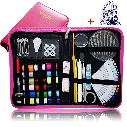 Sewing Kit Bundle with Scissors, Pearl Needle, Thread, Needles, Tape Measure, Carrying Case and Accessories for Domestic/Travel(Pink)