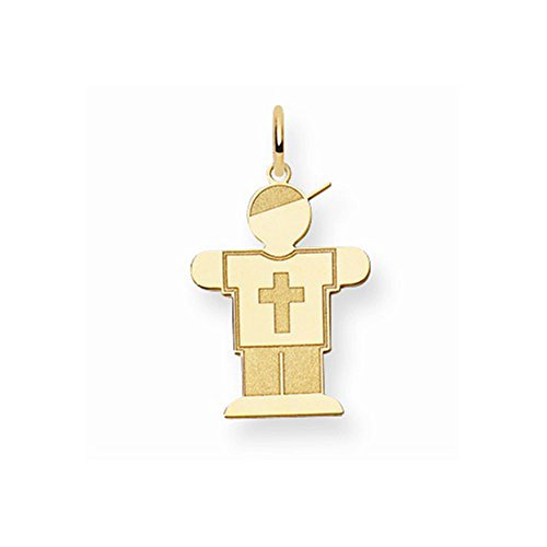 -. Binding : Jewelry -. Brand : The Kids Collection -. Department : unisex-child -. Feature : Free Gift Box with Purchase / The Kids Collection / Free Shipping on Orders Over $50 / 30 Day Money Back Guarantee -. Label : Jewelry Pilot -. Manufacturer : Jewelry Pilot -. Model : 942XK1156Y -. MPN : 942XK1156Y -. PartNumber : 942XK1156Y -. ProductGroup : Jewelry -. ProductTypeName : FASHIONNECKLACEBRACELETANKLET -. Publisher : Jewelry Pilot -. Studio : Jewelry Pilot -. Title : 14K Yellow Gold Laser Cut Kid Boy in Cross Shirt Charm Pendant