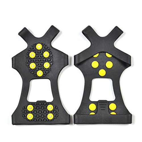 he special Ground-gripping steel studs under the ball and heel of your foot provide excellent grip on slick surfaces which makes it easier to walk on slippery ice or snow ground