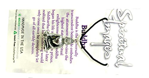 -. Feature : Buddha pendant, 1" x ¾" / Antique looking silvertone finish / 36" adjustable black cord / Handmade in America with lead-free pewter / Comes with story card