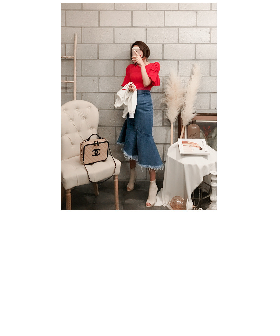ベーシックしたデニムパンツとカジュアルなルックにもよく似合います