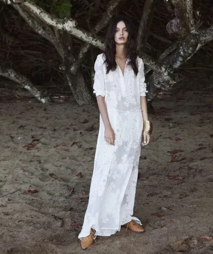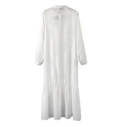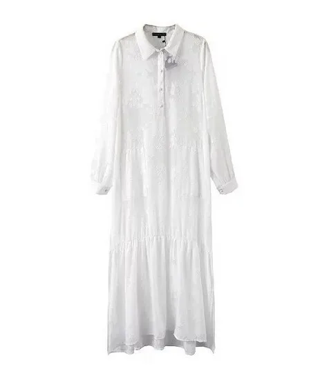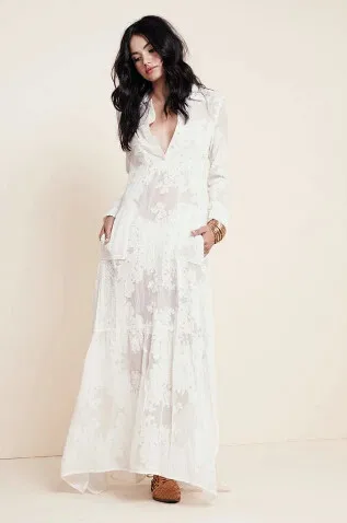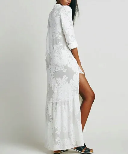 自由奔放に生きる女性2016スリット側レースの白いシフォンマキシドレス春夏新作ラペルビーチロングドレスロングスリーブブラウスシャツ