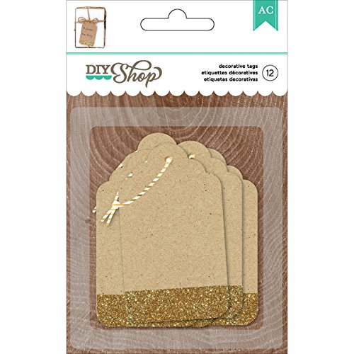 American Crafts DIY2 Glitter Kraft Tags, Gold