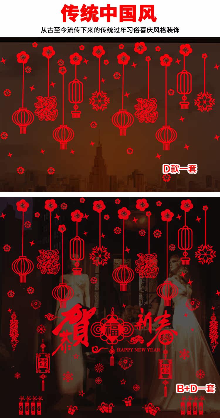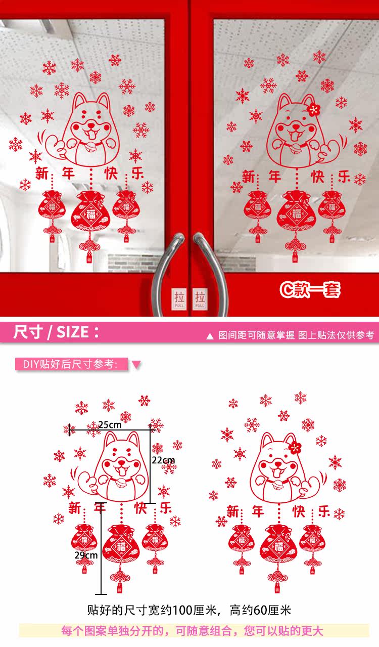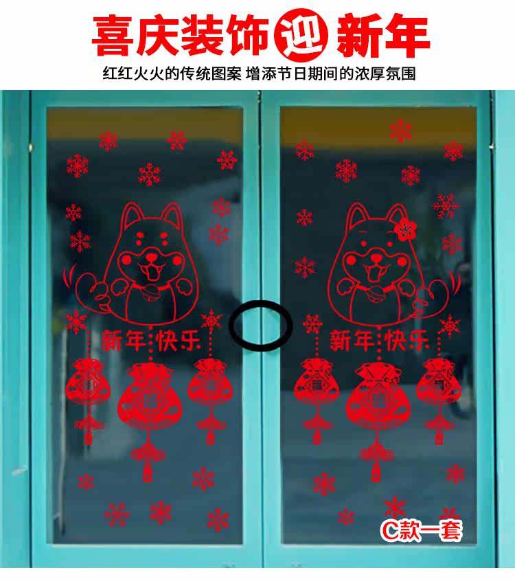 新年装饰品春节狗年福字静电贴商场店铺橱窗窗户玻璃布置贴纸