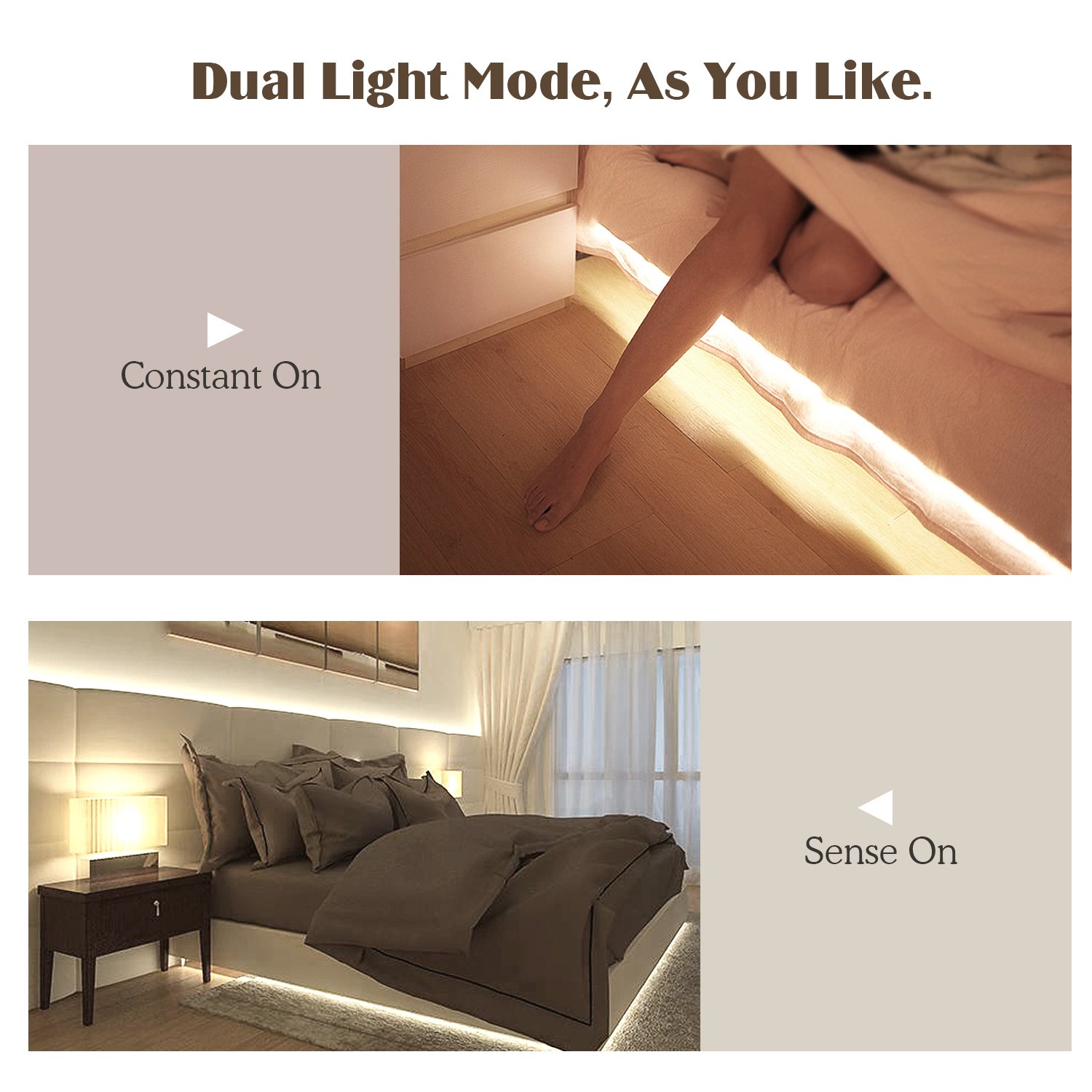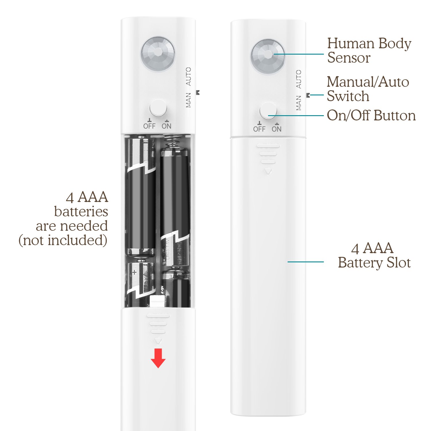 ● [2 mode installed] There are two modes, always on light mode (ON + MAN), sensor mode (ON + AUTO), you can choose the mode according to your needs.