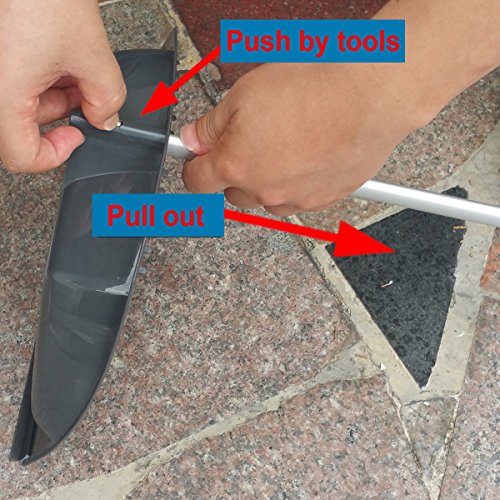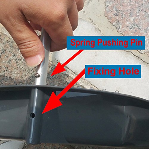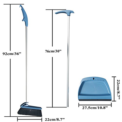 HOW TO ASSEMBLE: 1.3 parts of sweeping set in the box when opened: Dustpan,Dustpan handle with aluminium pole,Brush with handle; 2.Take the dustpan handle to find a small round alum. SPRING PIN at the bottom of pole press it, in the meanwhile push the whole metal pole into the same part of dustpan as described as photos; 3.Attach the alum. pole of brush into the handle holder of dustpan handle and put away at the room corner. 4.To take off the dustpan handle from the dustpan, pls take the REVERSE steps as POINT 2 by tools as photo show. --The whole set has a total height of 36 inches handle for a comfortable sweeping position; -- The 30" two-piece ALUMINIUM metal handles are durable enough for daily use and feature a convenient storage; --The angle cut head of brush part with wide bristles allows for efficient coverage reducing sweeping fatigue; --Long-handled dust pan with floor-molding rubber lip picks up small and large dirt with ease; --Dustpan shape for easy corner storage and locks into place when in use for effortless and secure debris collection, emptying and transport. --Serrated edge along the top verge of dustpan allows you to comb the broom's bristles without leaving a mess and collect the debris directly into the dustpan. --The handle of dustpan brush keeps attached during storage with comfort good grips.