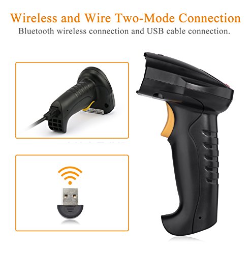 Bluetooth4.0 wireless and wire 2 in 1. Due to bluetooth technology, the connection between the scanner and operating system is wireless allowing the user to easily scan items without the annoying and uncomfortable restrictions of a wire or cord