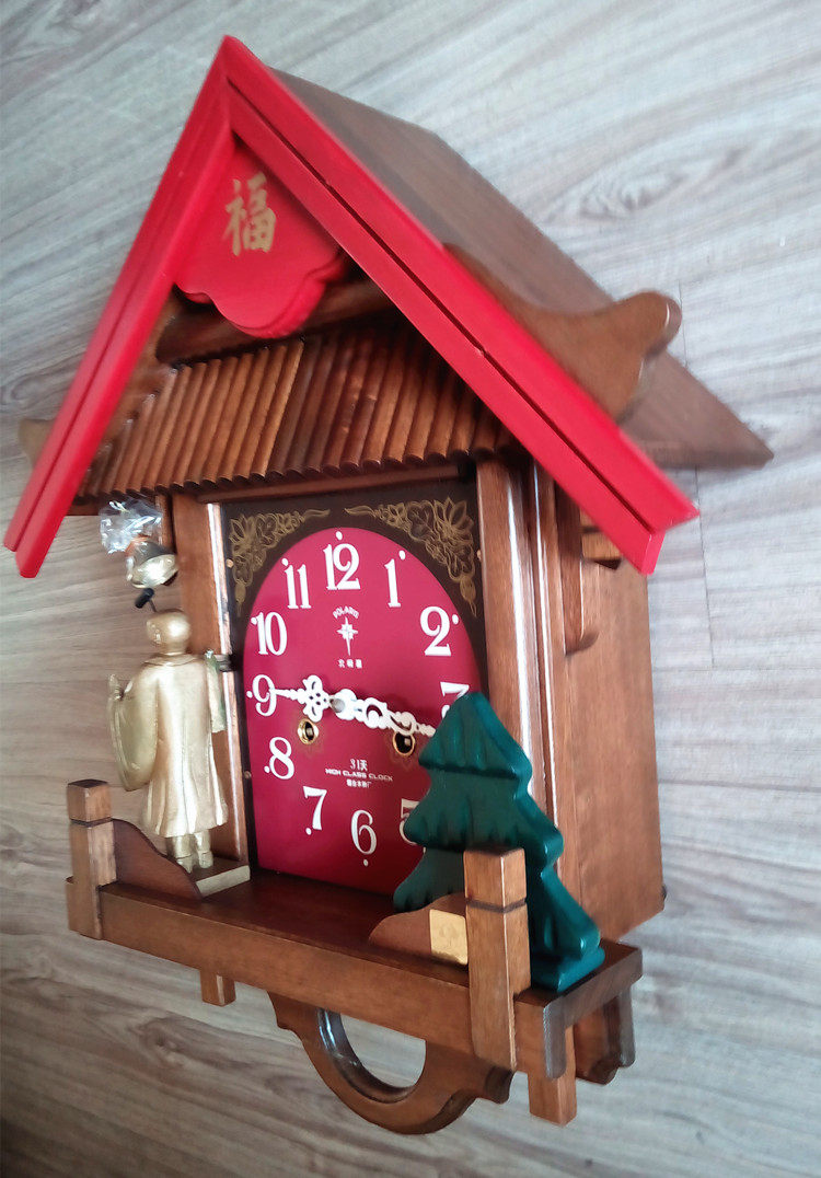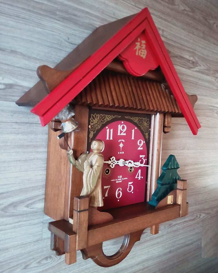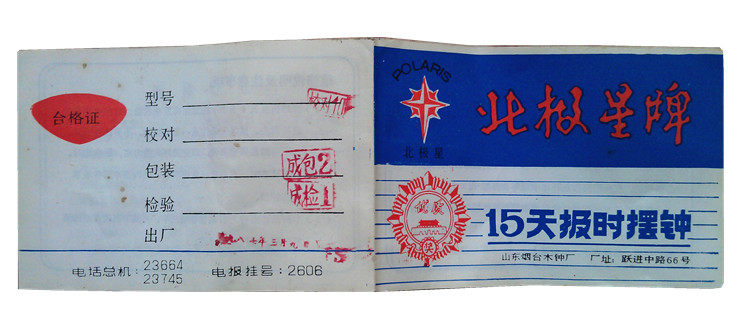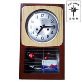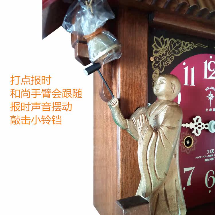 【产品介绍】北极星(POLARIS)牌木工艺挂钟,由山东烟台木钟厂于上个世纪90年代生产的优质产品,以质量稳定可靠,造型美观新颖而驰名国内外。实木机身,全铜机械机芯(非现代铝板或金属板镀铜机芯),具有走时和打点功能,半点打一下,整点几点打几下,声音是"当~当~当"的声音,上一次弦可以走15天/31天左右。晚上也会报时,没有夜间止报功能,如果想关闭报时功能,可以只上走时的弦(右边的孔),不上报时的弦(左边的孔)。