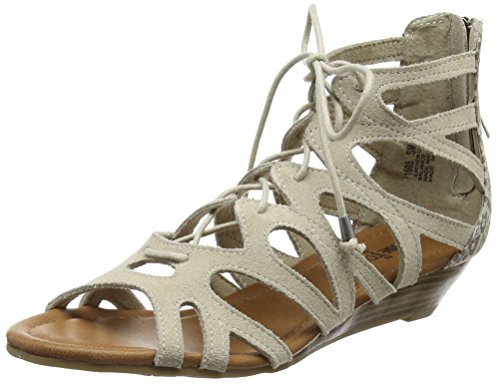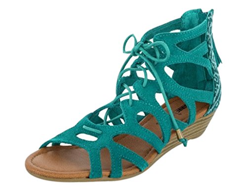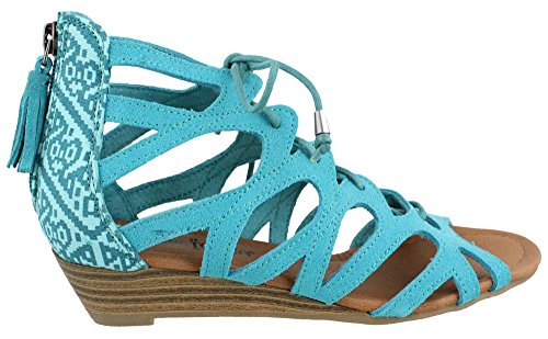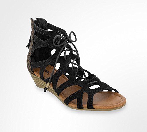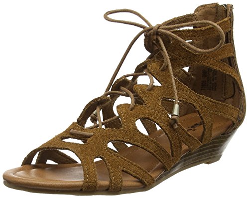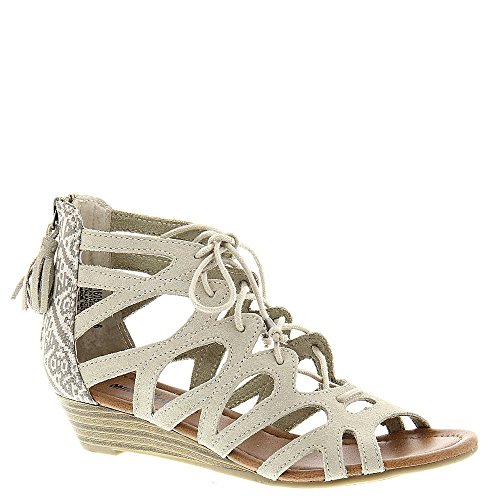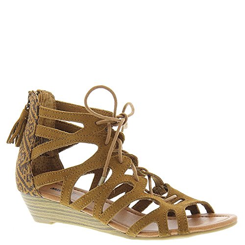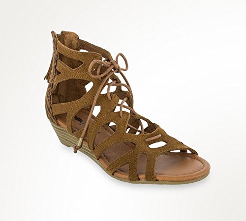 Women's Minnetonka, Merida II Sandal Transition your day to night look with ease in these sandals Leather and fabric upper with cute out design Lace up closure with easy entry back zipper Padded footbed for added comfort 1 1/4 inch wedge heel Rubber outsole. Heel Height of 1.25 inchesFeature