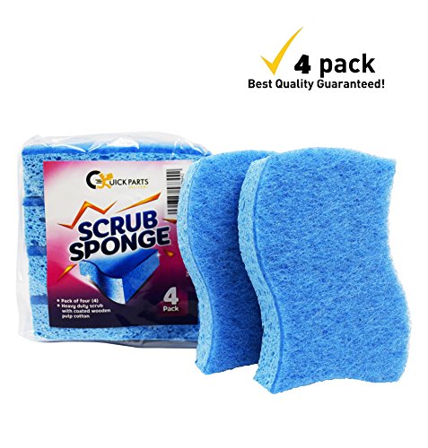 Heavy Duty Scrub Sponge with coated wooden pulp cotton - Blue - 4 pack