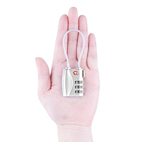 DONJON TSA Approved Travel Luggage Locks, 3-Digit Combination Security Cable Padlock- (silver)