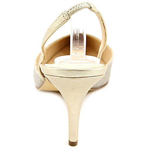Product DescriptionShimmering fabric upper. Pointed toe. Man-made lining. Lightly cushioned, man-made footbed. Wrapped heel. Synthetic sole. Imported.0