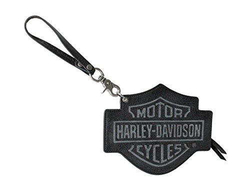-. Feature : Harley-Davidson Womens Branded B&S Shaped Distressed Black Leather Wristlet by LODIS / B&S Distressed logo shape / Genuine Veg leather / 6" Wrist strap / Size: 8" x 6 1/2"