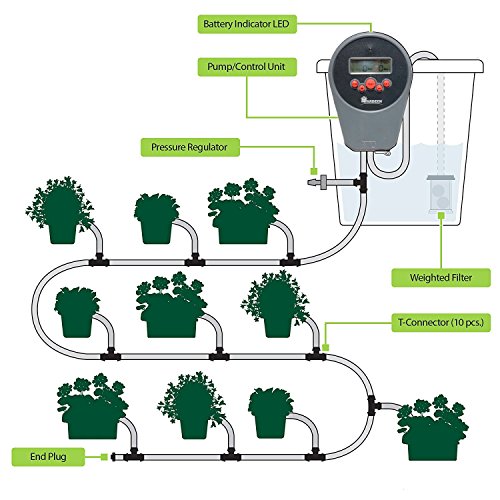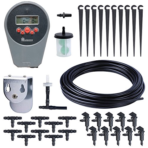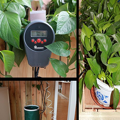 Yardeen Drip Irrigation System Kit Garden Flower Automatic LCD Display Water Timer with Membrane Pump, Black