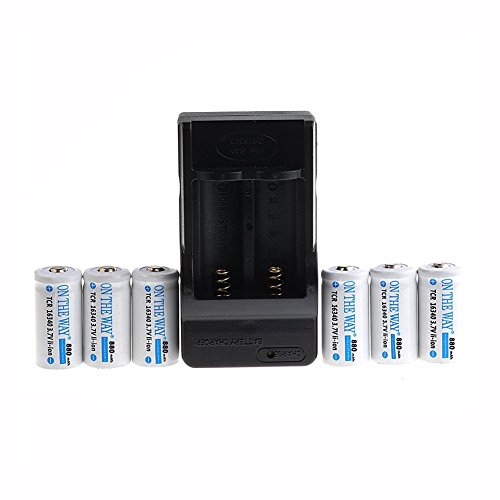 -. Title : ON THE WAY®6pcs 16340 CR123A LR123A 3.7V 880mAh Rechargeable Li-Ion Battery + Dual Wall Charger