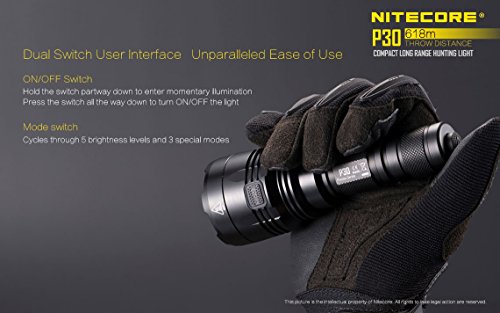 Nitecore P30 1000 Lumen 676 Yard Long Throw LED Flashlight with 2x LumenTac CR123A Batteries