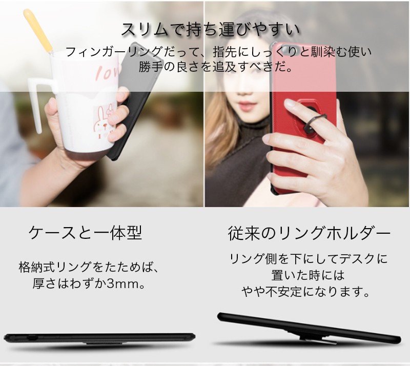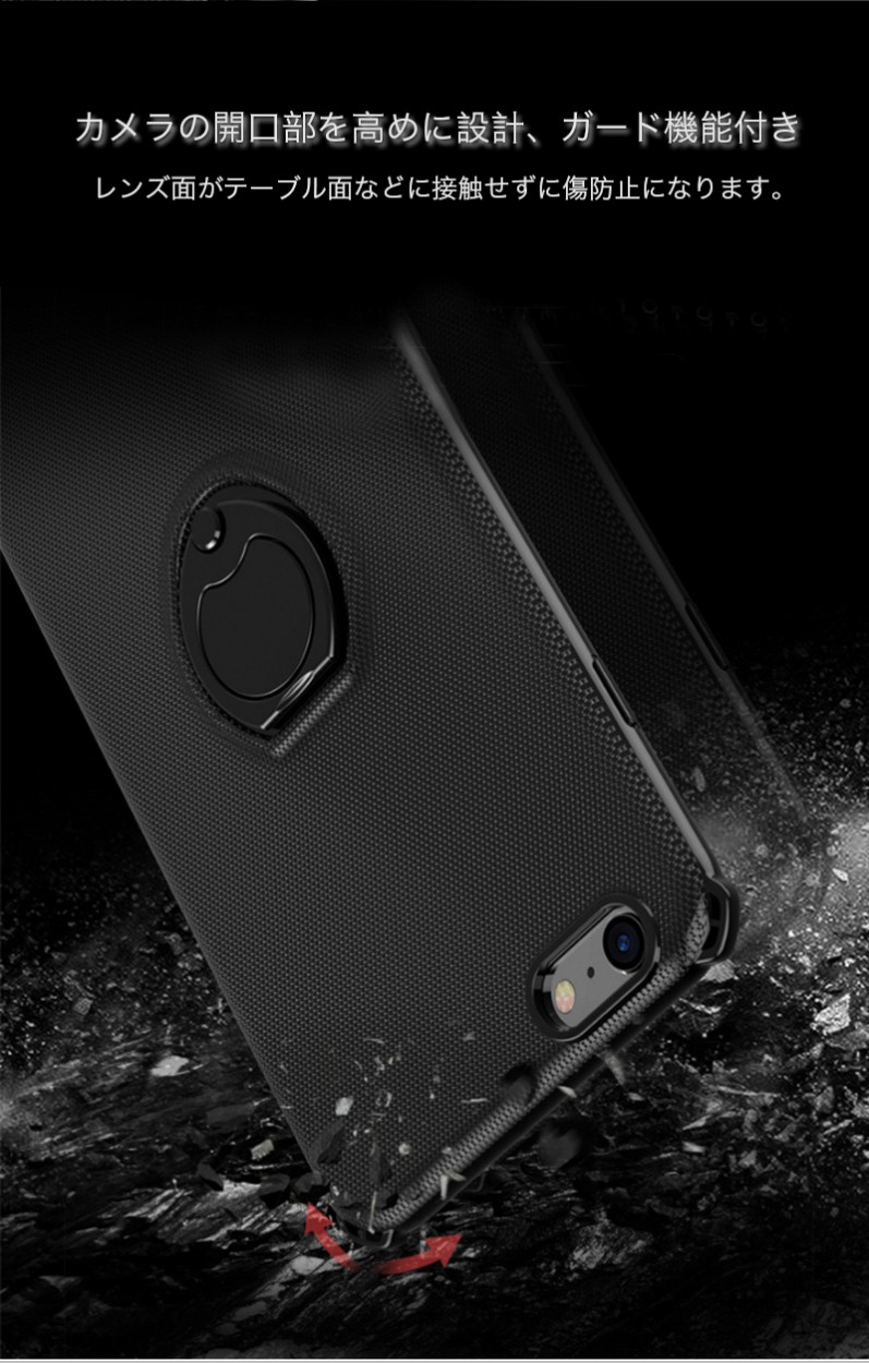 ★「対応機種」iPhoneX(アイフォンX)★「カラー」ブラック(黒)、レッド(赤)、ブルー(青)★「商品特徴」格納式はケースの背面に内蔵され、指を一本通すだけで、iPhoneをしっかりと持つことができます。リングの角度を調整することにより、立てかける角度を調整できるので動画視聴に最適。ケース背面のメタルプレートにより、マグネットタイプのカーマウントやスタンド等を使用することができます。★「キーワード」アイホンX ケース おしゃれ オシャレ 耐衝撃 TPU素材 衝撃吸収 リング付き リングスタンド機能 スタンド可 マグネットカーマウント対応 軽量 軽い 薄型 薄い スマホケース