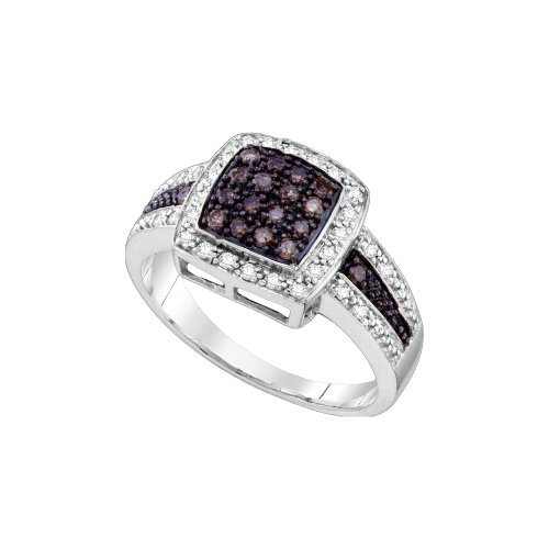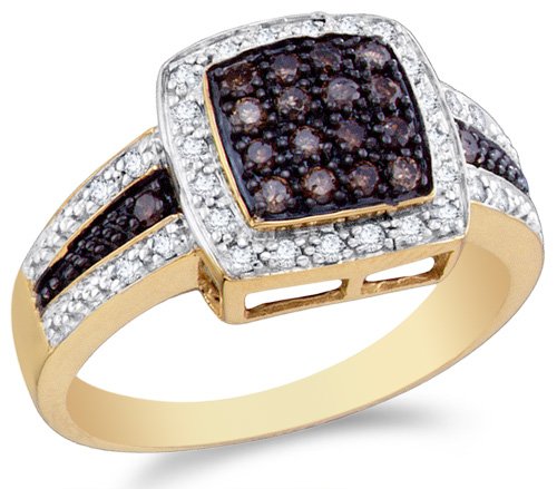 -. Title : 14K Yellow and White Two Tone Gold White and Chocolate Brown Diamond Halo Engagement OR Fashion Right Hand Ring Band - Square Princess Shape Center Setting w/ Channel Set Round Diamonds - (1/2 cttw)