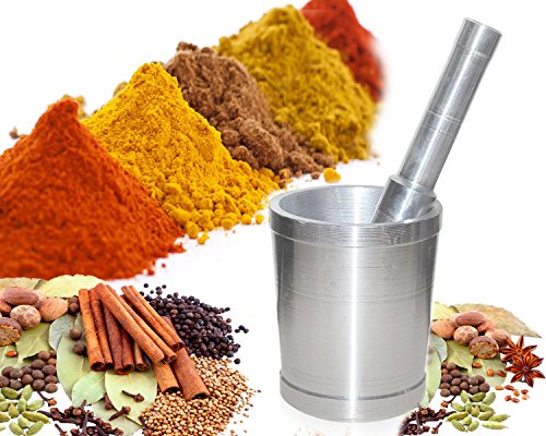 King International Aluminium Manual Spice Grinder Pestle and Mortar khalbatta Okhli Masher Set of Two pieces