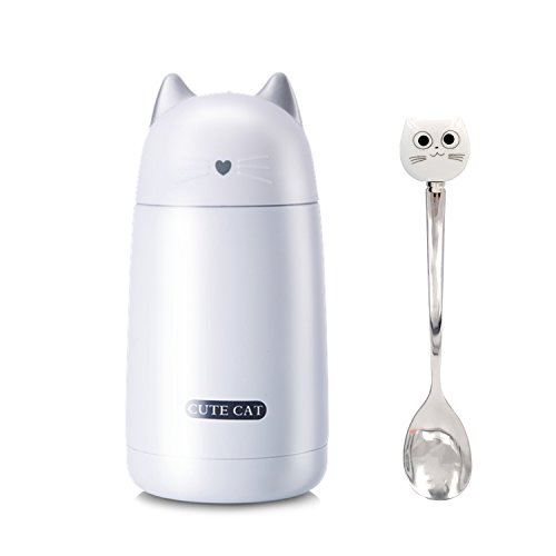 CAT LOVERS GIFT:Cute cat design thermos,and cute ceramic stainless steel cat spoon set,will bring you more happy drinking experience.It is will be a perfect gift for kids,women or cat lovers.