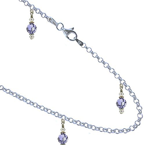 -. Feature : Metal- .925 Sterling Silver. 2.5mm Rolo style Link / Made with Swarovski Crystal Elements / Length- 6, 7, 8, 9, 10, 11, 12, 13 Inches. / Color- Purple, Tanzanite Colored / Crystal size- 8mm Faceted Round