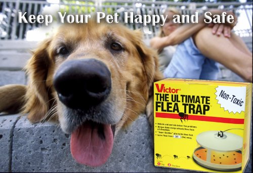 This flea trap monitors and controls flea infestations. The patented design produces the high efficacy of the trap. Lured in by the trap's color, the heat and light from the bulb, and the sweet odor inserted in the specially formulated sticky glue disc, fleas don't stand a chance. The non-poisonous and odorless trap enables safe placement around children and pets, comes fully assembled, and ready-to-use. Refills are also available.Feature