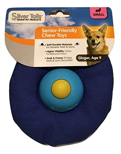 Studio : Silver Tails Publisher : Silver Tails Binding : Misc. Product Description This soft disc senior friendly dog chewing toy is specially made for senior dogs with soft yet durable materials suited for sensitive teeth, gums and weaker jaws. Thoughtfully designed for dogs with reduced vision, bright yellow rubber shapes stand out on the blue rubber ball in the center making easy for your senior dog to find. For added fun, and to ease common senior mouth discomfort, soak the soft disc senior friendly dog chewing toy in water and freeze. Great for easing the discomfort of teething puppies. Comes in small size. 0
