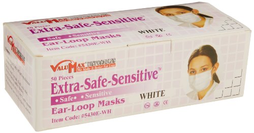 -. Title : ValuMax Extra-Safe-Sensitive Disposable Earloop Face Masks, Cellulose Inner Layer, High Filtration, Box of 50