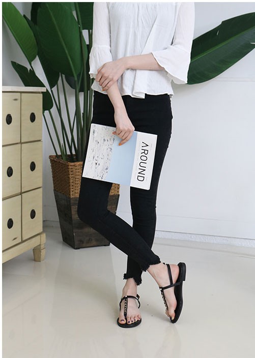 商品名:サンダル レディース ペタンコ Tストラップ アンクルストラップ 2018 春 ファッション 靴 婦人靴