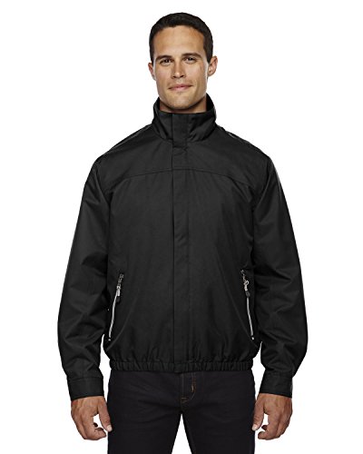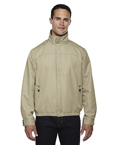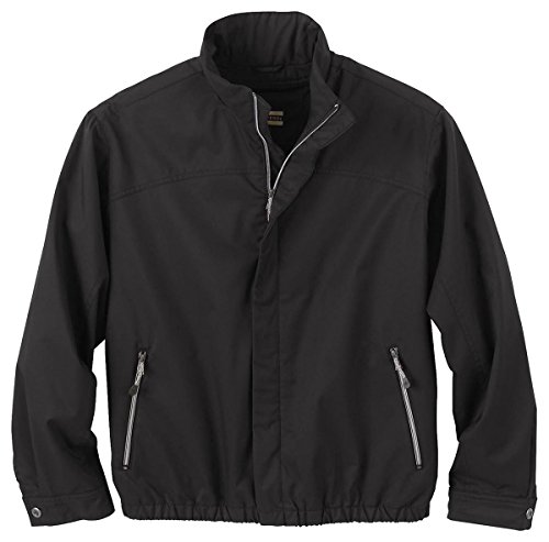Binding : Apparel Product Description 100% polyester microfiber twill, 4.4 oz./yd2/150 gsm; water resistant finish; full-zip with translucent teeth; zippered front pockets; adjustable cuffs with snap closures; inside zippered security pocket; concealed front placket; elasticized hem; 0