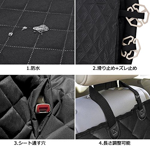 【多機能、5WAYの使い方】:2017年の最新モデルの犬ドライブシート、2016モデルの上、追加機能を加えました。人間がペットの隣に座れるため、中間部にファスナー作ってあります、そしてペットの小物収納に便利なポケットも4つ付いてあります。5WAYの使い方:①:両サイドのチャックを開いてセパレートタイプのドライブシートで使います。②両サイドのチャックを閉めてドライブボックスで使います。③ベルトを後部席のヘッドレストだけに掛けて、チャイルドシート利用の方やお子様が使用できる車シートカバー。④トランクに敷いてトランクシートとして使います。⑤ペットの隣に座りたい時に、中間部のファスナーを開いて人間とペット同時に使える車シートカバーになります。こうやて、ファスナーの開閉と使用位置で合わせて5WAYの使い方持ってる犬防水カーシート。