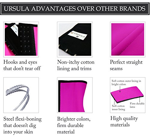 -. Binding : Apparel -. Brand : Ursula -. Department : womens -. Feature : Original Colombian design and technology, high quality manufacture and fair trade. Don't be fooled by cheap Chinese imitations. Authentic Ursula fajas are sold by Five Big Stars only. NOTE improved images displaying with new models from our April 2016 photo shoot. / All sizes have been confirmed to fit. BUYER NEEDS TO USE TAPE MEASURE TO CONFIRM HER ACCURATE WAIST SIZE BEFORE ORDERING to prevent ordering wrong size. DO NOT GO BY YOUR CLOTHES SIZE, HEIGHT OR WEIGHT. / STEEL FLEXIBLE BONING (2 at front and 2 at back) for extra support prevents garment from rolling up or down and bends with your body to prevent poking into skin. NO-SLIP INNER COTTON LINING; latex does not touch skin. / IMPROVES FIGURE by instantly controlling bulges and slimming body. Compression trains waist to smaller size and latex BOOSTS THERMAL ACTIVITY during exercise, STIMULATING FAT LOSS. / 2 torso height options for standard (11" high) or long (13.75" high) coverage. Delicate seams and small hooks and eyes closure make it a discreet garment for wearing under clothes. -. Model : WC02 -. PackageQuantity : 1 -. ProductGroup : Apparel -. ProductTypeName : UNDERWEAR -. Title : Ursula Waist Trainer for Weight Loss Latex Workout Cincher Hourglass Corset XXS-4XL