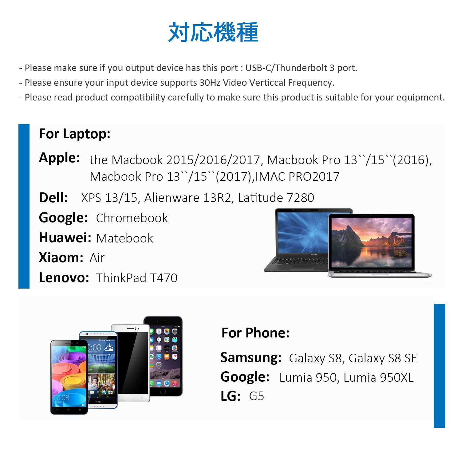 Supports USB-C devices, such as 2016/2017 Macbook Pro, 2015 MacBook 12 ', 2017 iMac, Dell XPS 13/15, Lenovo Yoga 910, HP Specter x 360 etc