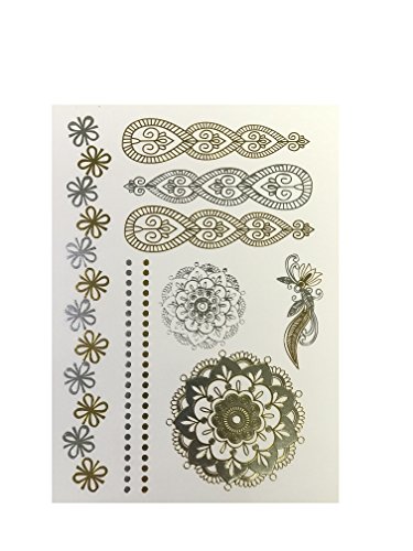 Gift Pack Metallic Temporary Henna Tattoo Gold Silver Body Sticker 6 Sheets Pack