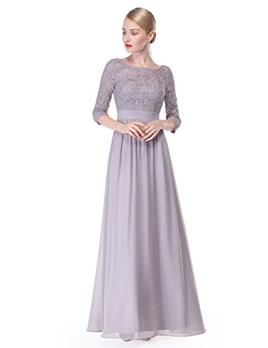 This stunning evening dress features a figure flattering ruched satin waist and a 3/4 sleeve lace bust. The formal floor length of the dress coupled with the classic white color makes this dress perfect for any affair; it has also been very popular with mothers of the bride and groom.