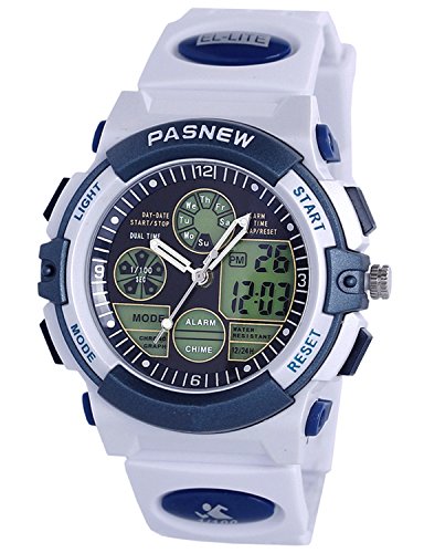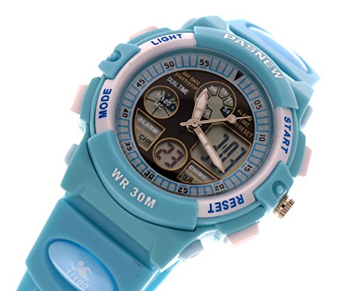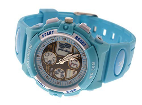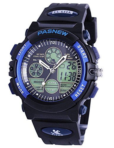 5. MULTI-FUNCTIONAL: Design Calendar Date Window, Dual Time Display, Time/date, 12/24 hour format, 30M Waterproof, Noctilucent, EL Back Light Display, Shock Resistant, Stopwatch.Easy to set up. It is able to operate it by children own. Nice watch for elementary age kids.Best present for your kids.