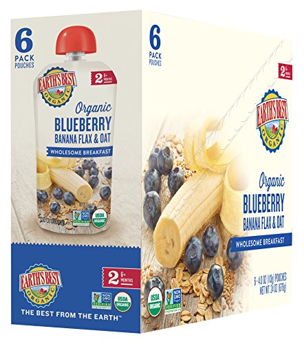 Earth's Best Organic Stage 2, Blueberry & Banana Breakfast, 4 Ounce Pouch (Pack of 12) (Packaging May Vary)
