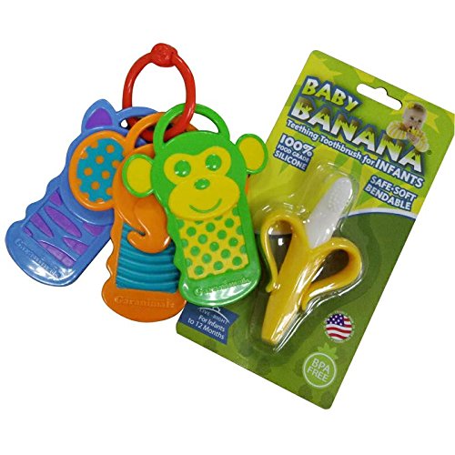 Studio : Cherry Pick - Quality 1st Toothbrush Publisher : Cherry Pick - Quality 1st Toothbrush Binding : Baby Product Product Description We know what your child needs during this critical time of growth, as a result we have come up with the two most important products to help your child through their teething period. 100% Food Grade Silicone Safe - BPA Free Baby's First Toothbrush and Teether, Developed for Good Oral Hygiene Habits Early Easy to Grasp "A-Peel-Ing" Banana Handles along with key shaped teether. The cool resilient surface soothes and stimulates sore gums safely and stays colder, longer than water filled teethers! The colorful key shapes with raised, offset surfaces assist in the eruption of teeth by gently massaging infant's gums. combined with Safe - Soft Flexible Material Decreases Risk of Mouth Injury 100% High Quality, Non-Toxic, Non-Allergenic Silicone BPA, Latex, and Phthalate Free Dishwasher and Freezer Friendly. Suggested Use: Wash Banana Brush before using. As with any toothbrush or teether, never leave child unattended during use. 0