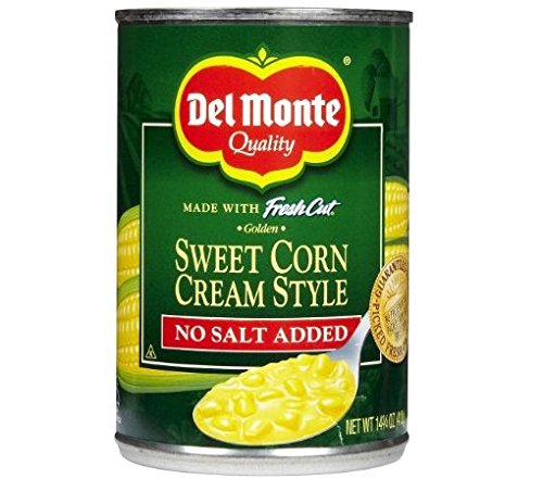 Del Monte No Salt Added Sweet Cream Style Corn (Pack of 6) 14.75 oz Cans