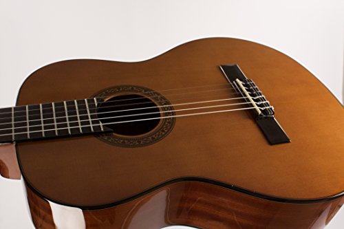 Studio : Jose Mederos Publisher : Jose Mederos Product Description A Full Size Nylon String Classical Guitar. This guitar has been the choice of thousands of our customers seeking a well made, good sounding, easy playing affordable nylon string classical guitar. Adults adult size children that stand 5' tall or more find this guitar a good comfortable fit. The sound is very warm, lively and responsive. The playability or "action" is very easy to play. All our instruments are completely Set-up Shop Adjusted here in our shop By A Professional With 35 Years Experience. A $90. service we have done free of charge to every instrument we have sold since 1978. NOTE: Sadly most guitars sold in this price range get no set-up work making those guitars difficult to play or keep in tune. VERY IMPORTANT EXCITING NEWS: There is now a new professional grade nylon string that DOES NOT STRETCH AND STAYS IN TUNE. We string our nylon string guitars with these U.S. made D'Addario J-45 TT Titanium. ALL OTHER NYLON STRINGS especially inexpensive strings you find on guitars in this price range stretch and stretch and stretch some more requiring constant tuning. Specifications: Spruce Top Traditional Scalloped Fan Bracing Mahogany Body Mahogany Neck Dimensions: 40 Inches Long 14 1/2 Inches Wide 11 1/4 Inches Wide 4 Inches Deep 2 Inches Wide At The Nut 25 3/4 Inches From Nut To Saddle 0