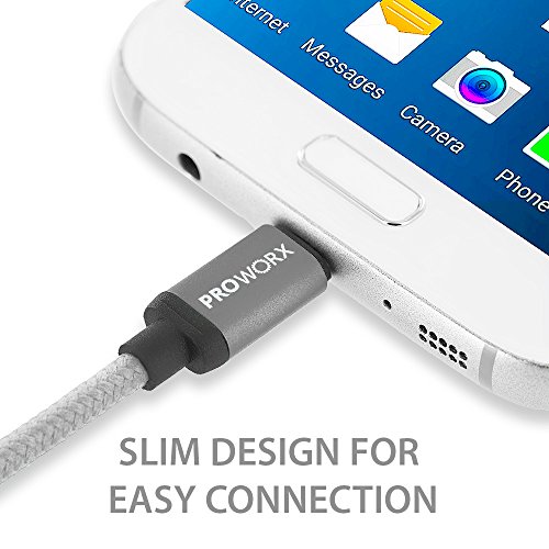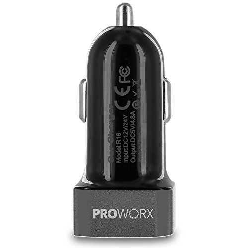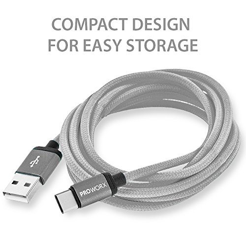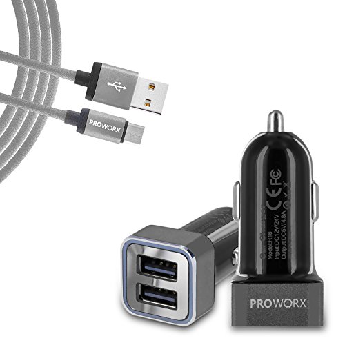 Dual Ports USB Car Charger, PROWORX 4.8Amp/24W Fast Rapid Charging Car Charger & 6FT Long Type-C USB Cable Gray For Google Pixel XL, LG V20, G5, ZTE Zmax Pro Grand X4 X3 & More