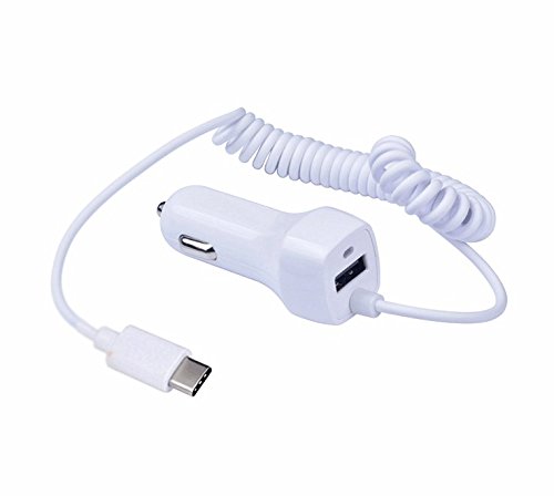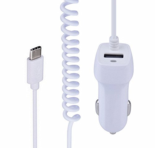 USB Type C Car Charger, Vehicle Ultra Rapid Car Charger USB C Cable for LG G5, Galaxy S8/ S8 Plus, Huawei P9 Plus, Nokia N1, Nexus 5X 6P, Lumia 950/950XL and More USB Type-C Devices (White 2.1A)