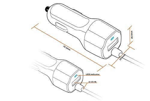 3.Convenient:Design with Dual Output that Pushes Out 2.1A with the 3FT USB 3.0 Coiled Cable and 1.0A with the Other USB Port.