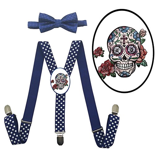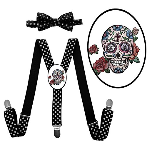 (QZ-Lee)/Accessories/Suspenders Cummerbunds/DIRECT FROM USA/QZ-Lee Retro flower skull Suspender Bow Tie/Unisex Suspender/Adjustable Suspender/Y-Back Suspender