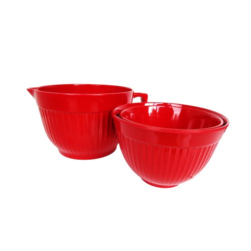 Natural Home Molded Bamboo 3-Piece Mixing Bowl Set, Cherry Red